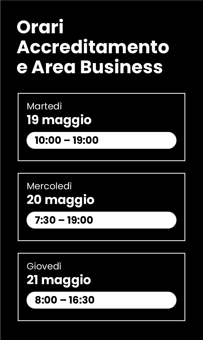 Per accedere all’evento e agli eventi serali è necessario portare con sé ed esibire il badge personale quando richiesto.