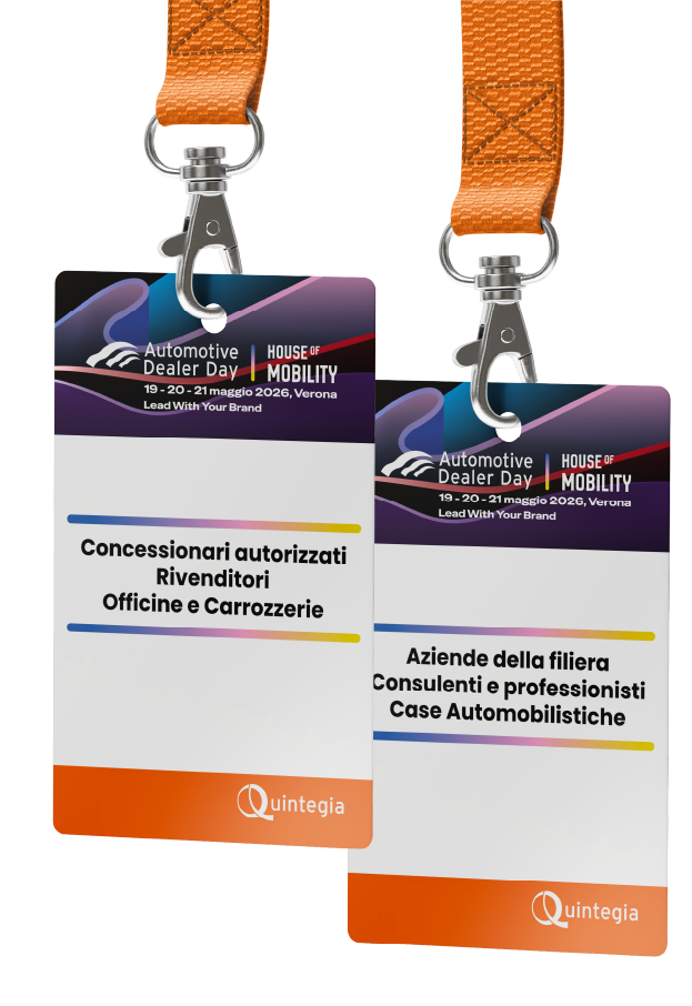 Il biglietto per Automotive Dealer Day è personale e nominativo, pensato per garantire sicurezza e un’esperienza dedicata a ogni partecipante. Valido per l’intera durata dell’evento (tre giorni), consente l’accesso all’area espositiva e a tutte le sessioni e ai meeting in programma. Non sono previsti biglietti giornalieri.